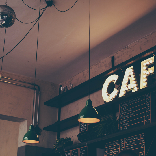 The cafe has amazing coffee and a warm, inviting atmosphere!
